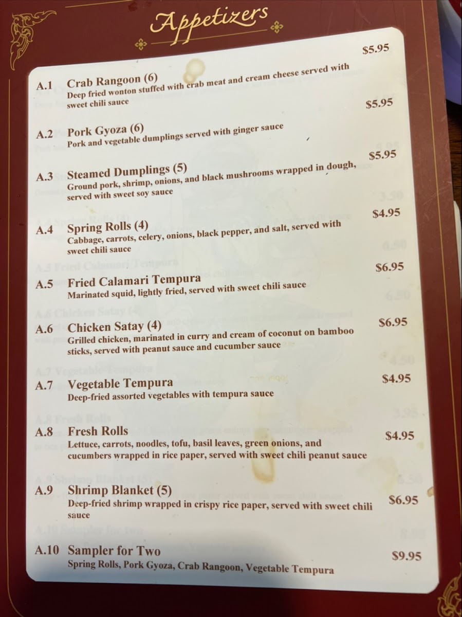 Welcome to Little Ninja Thai Japanese Food And Cafe, a charming gem located at 5709 6th St, Zephyrhills, FL. This intimate space, with only six tables, creates a cozy atmosphere that feels like home. Each dish showcases not only incredible flavors but also stunning presentations, featuring artistic details like roses garnishing entrees and decorative crickets on glasses. The menu offers a delightful fusion of Thai and Japanese cuisines, catering to all heat preferences, from mild to spicy.